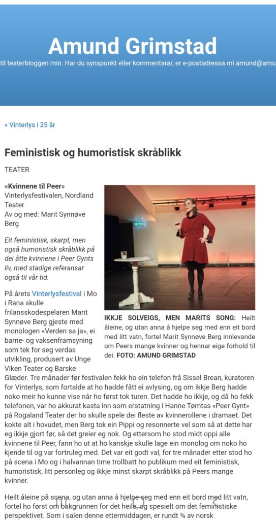 Fantastisk fint å få være en del av vinterlysfestivalen 2026, og enda mer stas å bli omtalt i Amund Grimstads blogg.